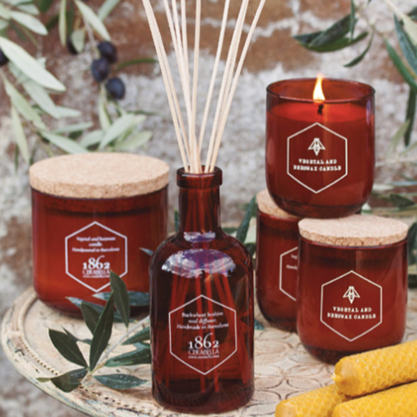 Vela de cera de abeja y cera vegetal, en vaso de cristal, fabricada con cera 100% natural. Va presentada con una tapa de corcho.
