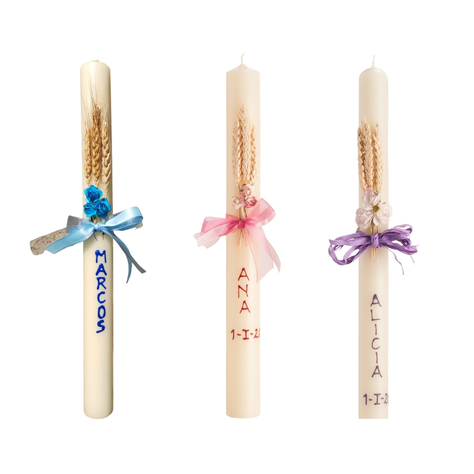 Cirio de bautizo pequeño de 40 x 3,5 cm decorado