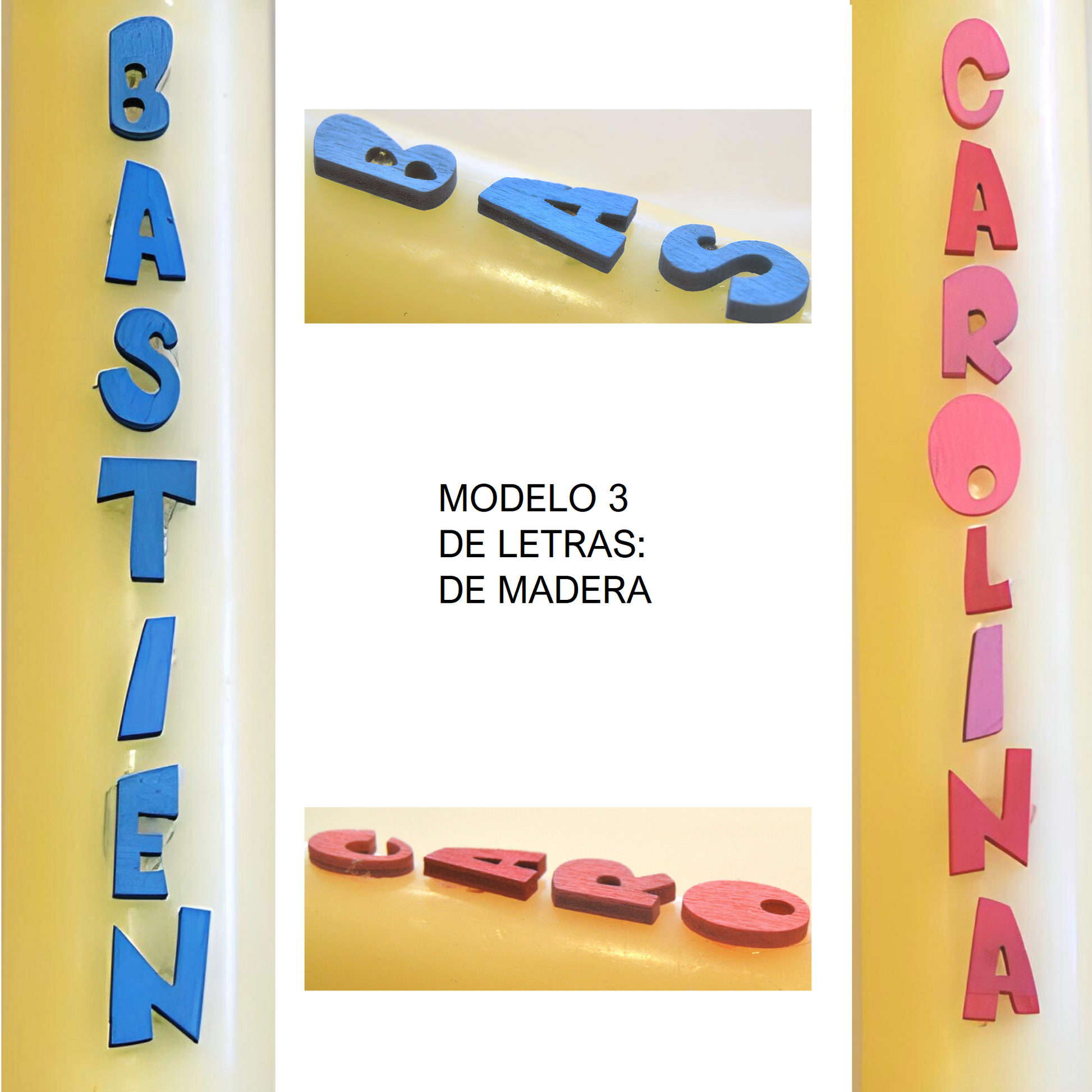 - Letras de madera. MOD 3 (Disponibles todas las letras excepto la A. Disponible solo en color azul y rosa.)