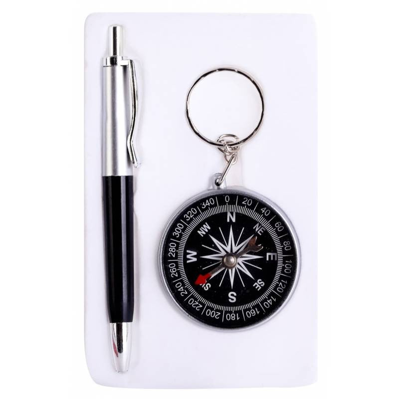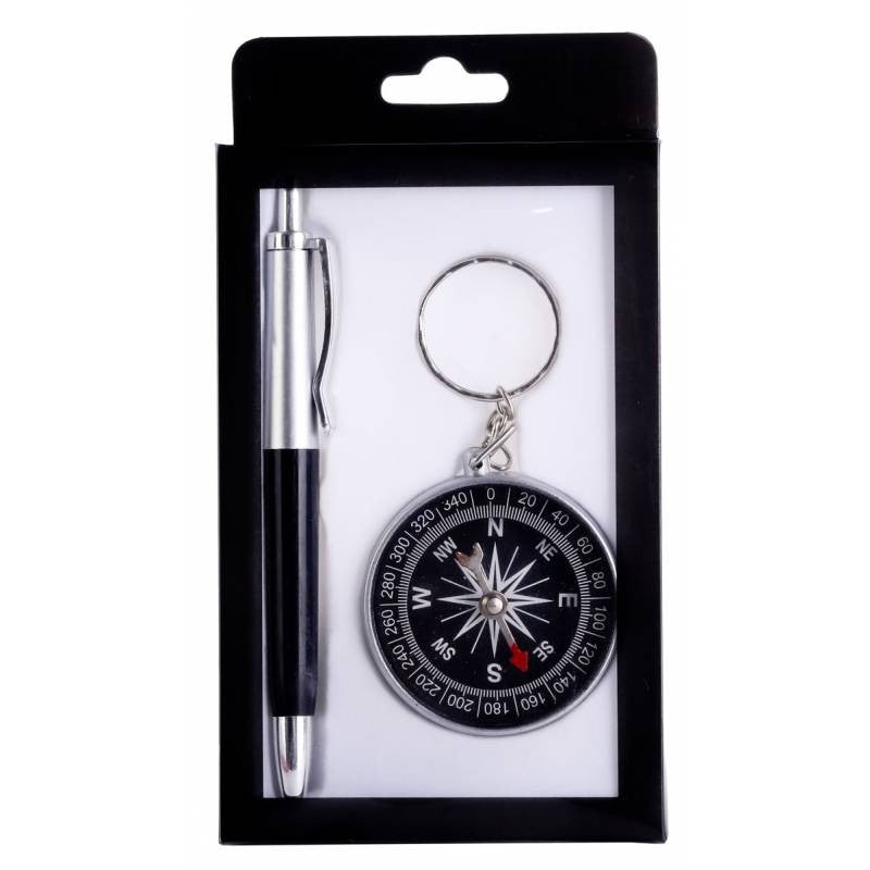 Caja de regalo con bolígrafo y brújula