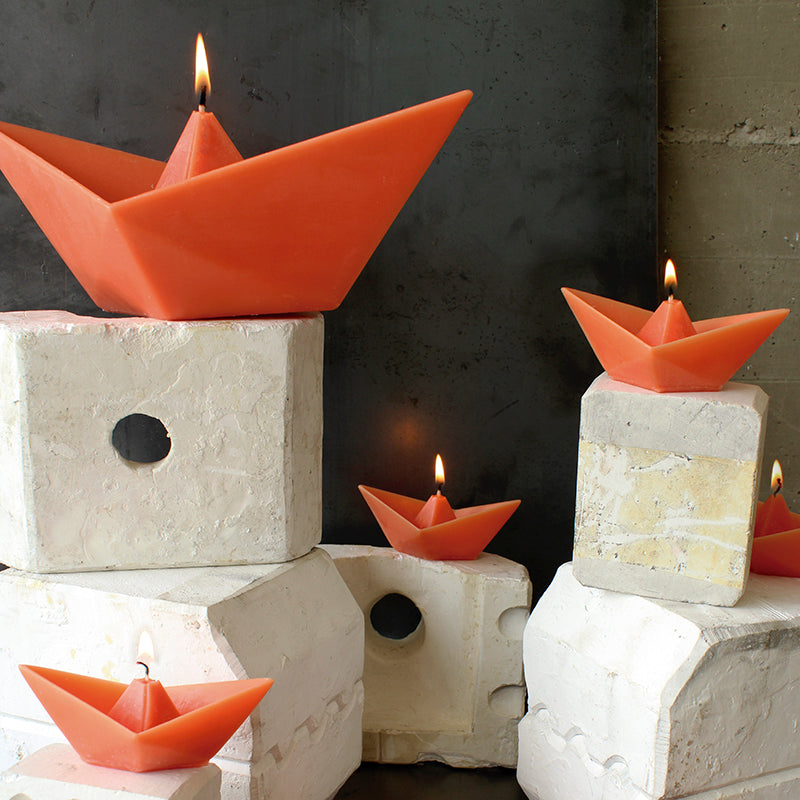Vela de diseño con forma de barco de papel de Luki Huber & Marta Méndez.
