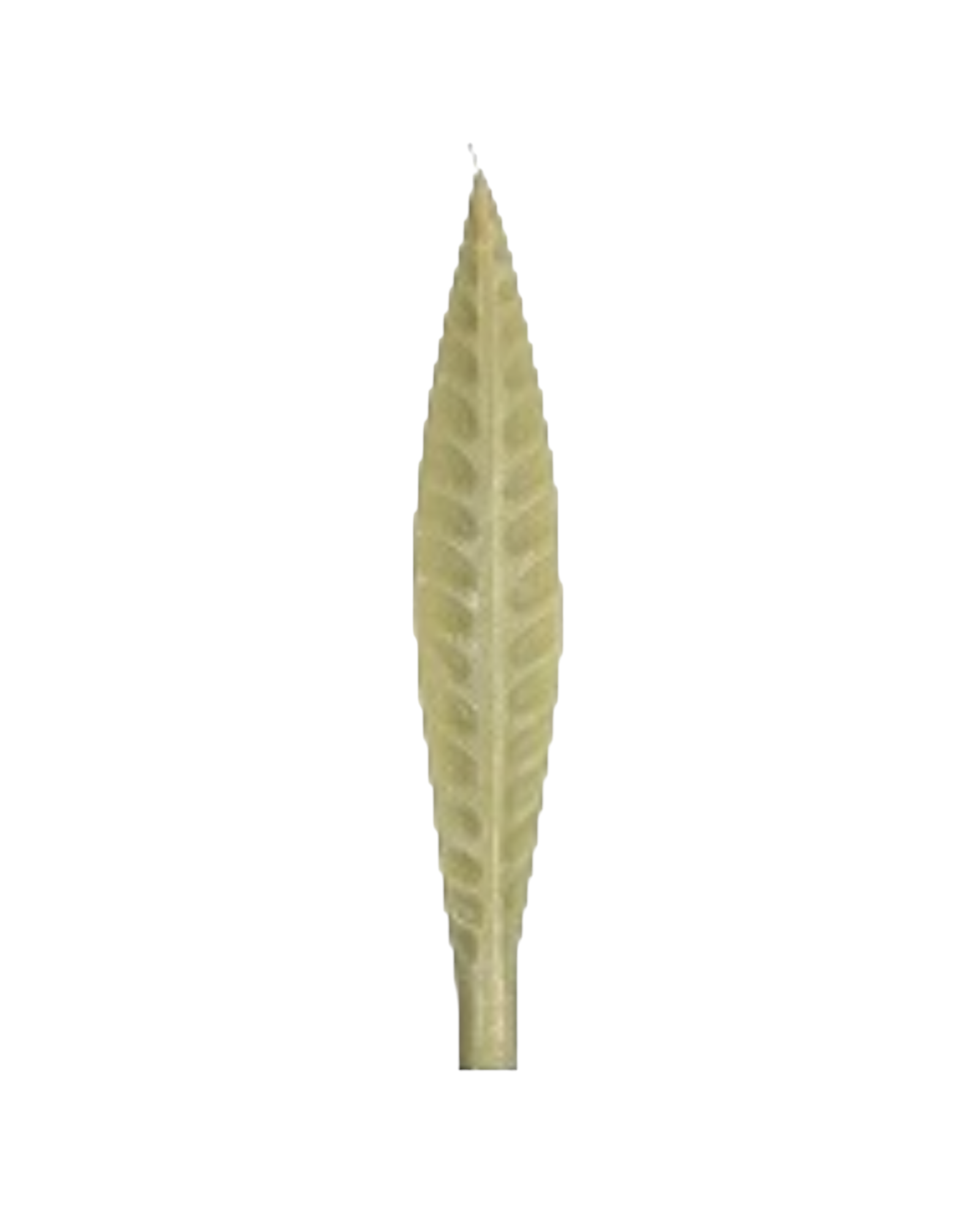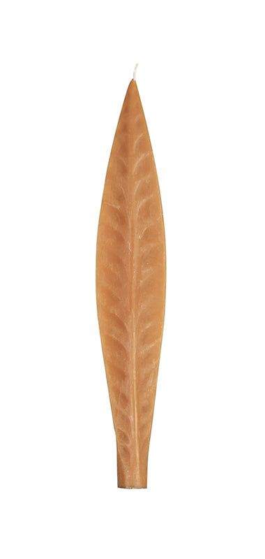 Vela decorativa en forma de hoja con un suave aroma a ruibarbo. Un complemento decorativo que aportará elegancia y sofisticación a vuestro hogar.