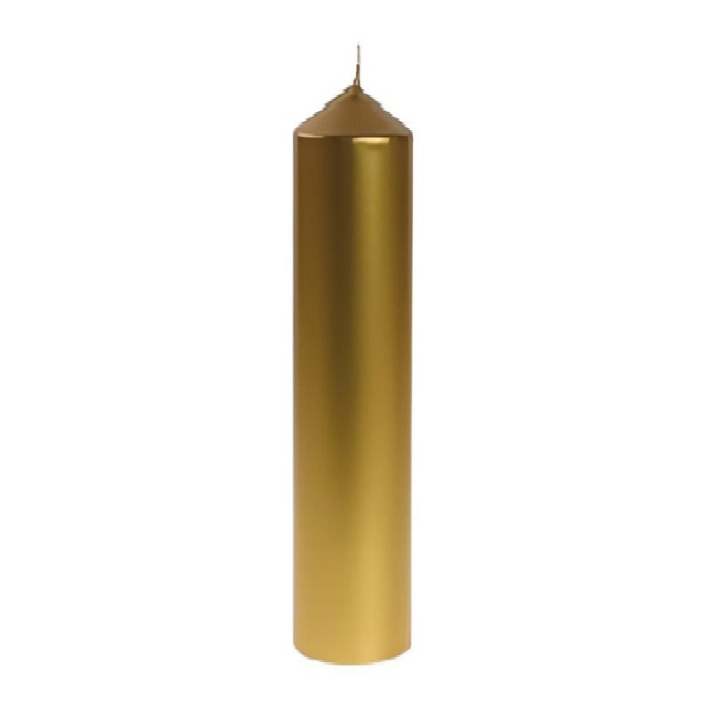 Vela cilíndrica color dorado de 20 x 6 cm.